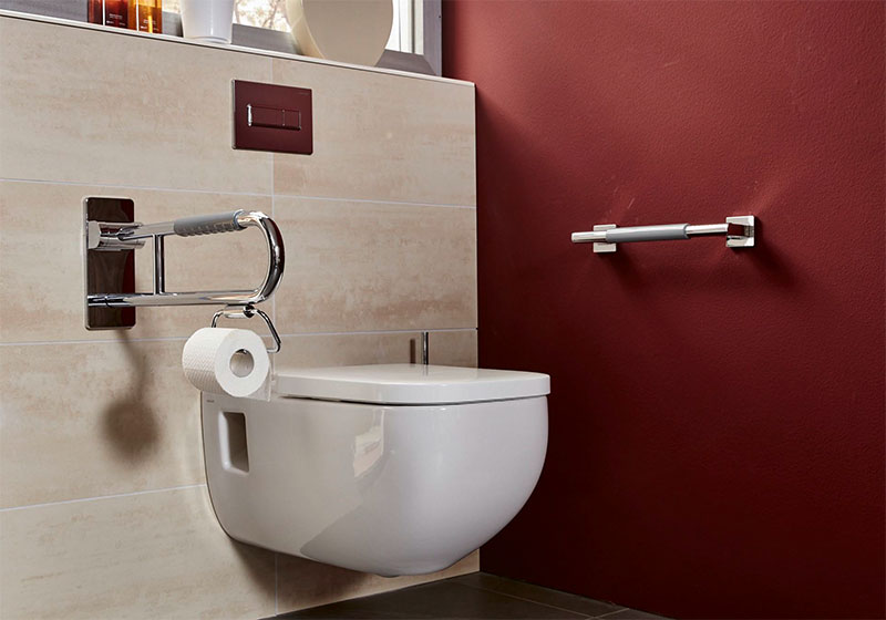 Großzügige Dimensionen in Länge und Breite bringen ein Plus an Komfort. Außerdem ist die richtige Höhe entscheidend sowie Haltegriffe zum Stabilisieren – für leichtes Hinsetzen und Aufstehen oder für den Wechsel von einem Rollstuhl auf den WC-Sitz.